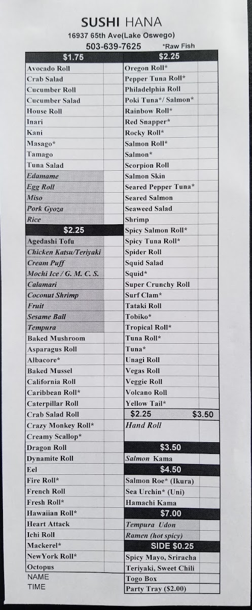Welcome to Sushi Hana, a delightful sushi haven located at 16937 SW 65th Ave, Lake Oswego, OR. Renowned for its inviting atmosphere, Sushi Hana offers a diverse menu that appeals to sushi lovers and newcomers alike. Customers rave about the salmon hand rolls and fresh salmon nigiri, which have garnered perfect scores for their flavor and texture.